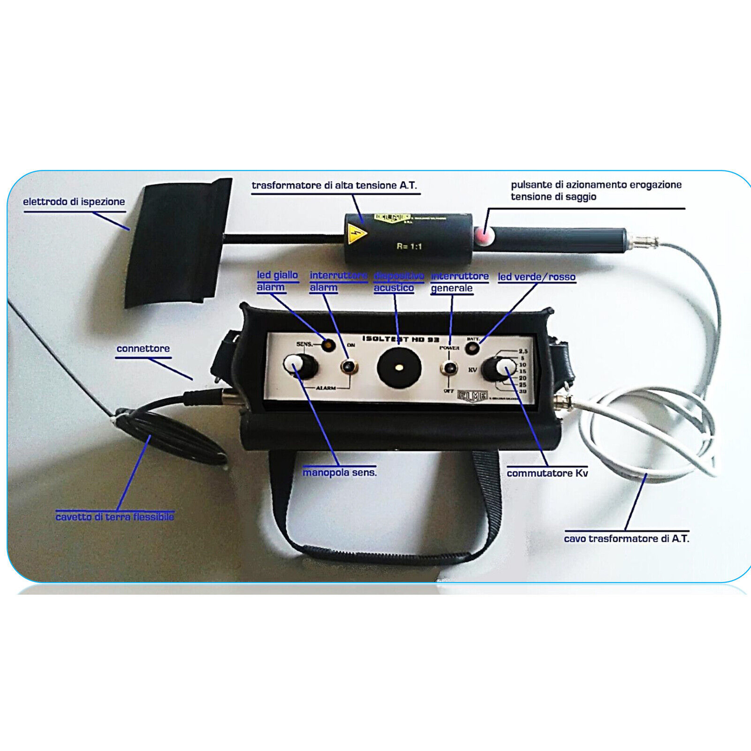 ISOLTEST HD87 sa skladá zo základnej prenosnej jednotky, ktorá dokáže generovať pulzujúce napätie s premenlivým rozsahom, ktoré dokáže testovať nátery v rôznych hrúbkach a prostredníctvom akustického indikátora signalizovať stav náteru.
