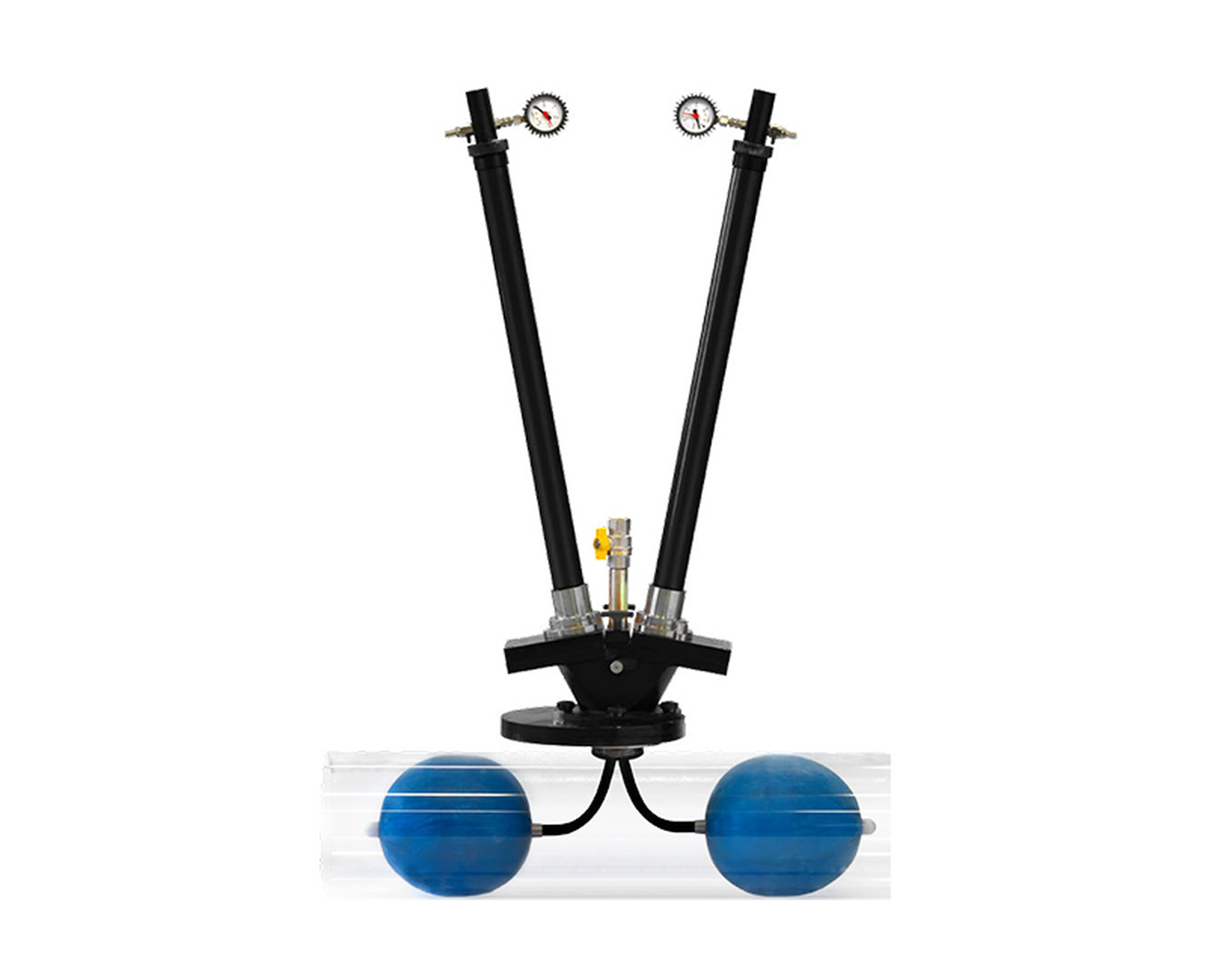- Možnosť využitia centrálnej vodiacej rúrky ako prieduchu alebo na takzvaný „hydraulický chránič“, teda privádzanie vody medzi dva balóny na vytvorenie bezpečnej bariéry s plynom na oceľových rúrach.
